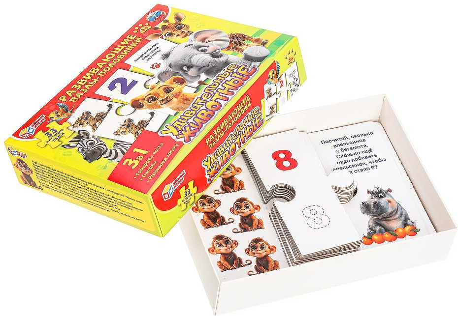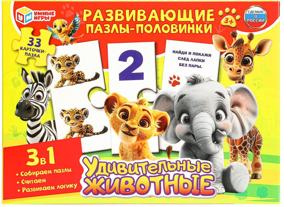 Умные игры Пазлы-половинки развивающие «Удивительные животные»-30% +57