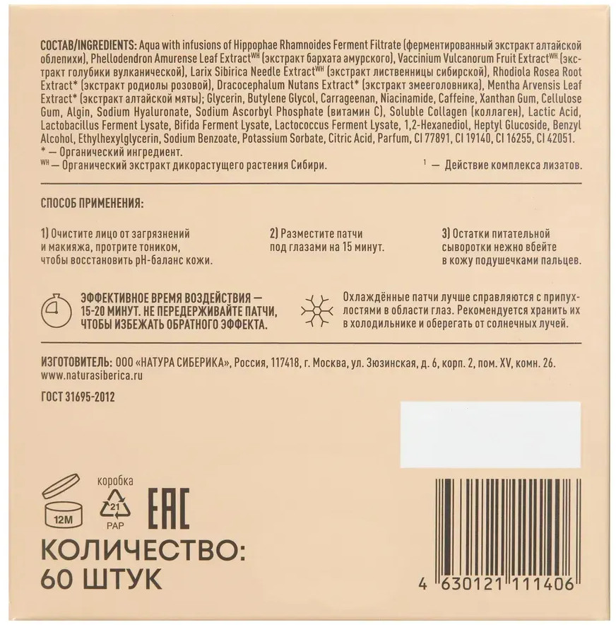 Natura Siberica Патчи для кожи вокруг глаз с коллагеном и витамином C «Упругость. Pro-collagen Anti-age Eye Patches»