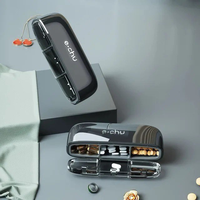 Легкая и компактная таблетница удобно помещается в сумке или кармане, что делает ее идеальной для использования дома и в поездках. Таблетницу легко чистить, что позволяет поддерживать высокий уровень гигиены и безопасности. Наша таблетница идеально подойдет для пожилых людей, людей с хроническими заболеваниями, а также для всех, кто принимает витамины или другие добавки. Это также отличное решение для заботливых родственников, которые хотят помочь своим близким в организации приема медикаментов.