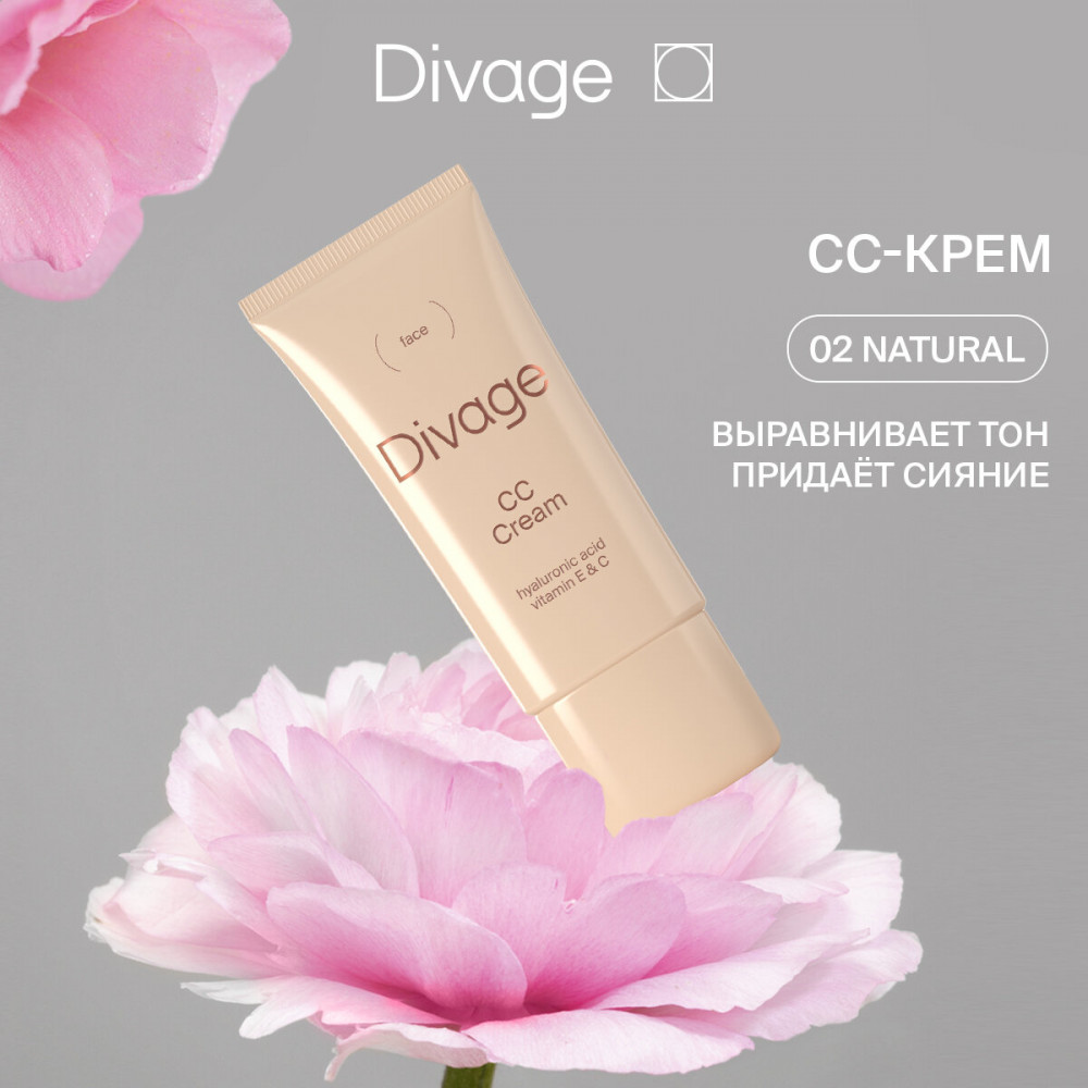 Divage CC-крем с гиалуроновой кислотой и витаминами Е и С, оттенок 02 Natural
