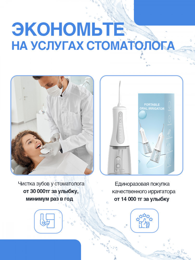 💳 Оплатить за товар можно при получении 🇰🇿 Есть бесплатная доставка по Казахстану от 1 дня 🎁 Копите бонусы с каждой покупки Портативный ирригатор — здоровье вашей улыбки всегда с вами. |