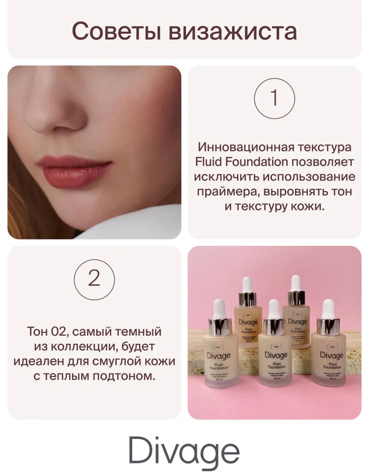 Divage Тональный крем-флюид «Fluid Foundation», оттенок 02 Медово-бежевый