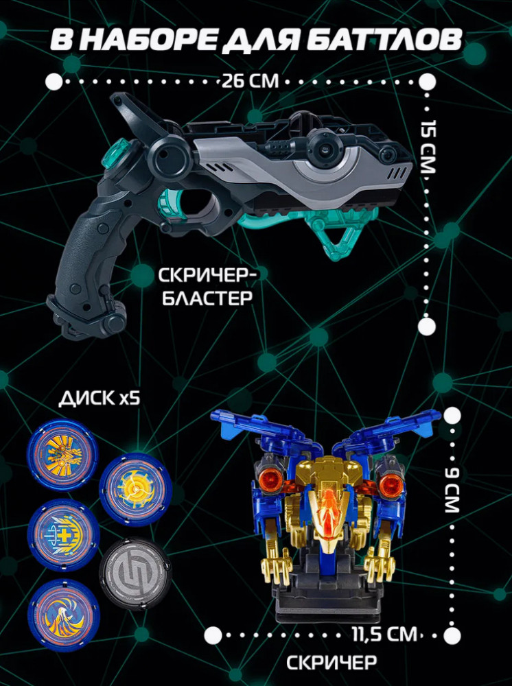 💳 Оплатить за товар можно при получении 🇰🇿 Есть бесплатная доставка по Казахстану от 1 дня 🎁 Копите бонусы с каждой покупки Новинки Диких Скричеров стирают границы между вселенными! Представляем первый Скричер-Бластер — революционный девайс коллекции Кибер из метавселенной Сайберсити, который объединяет миры! Он не только запускает Скричеров, но и заряжается тремя дисками для динамичных атак. |