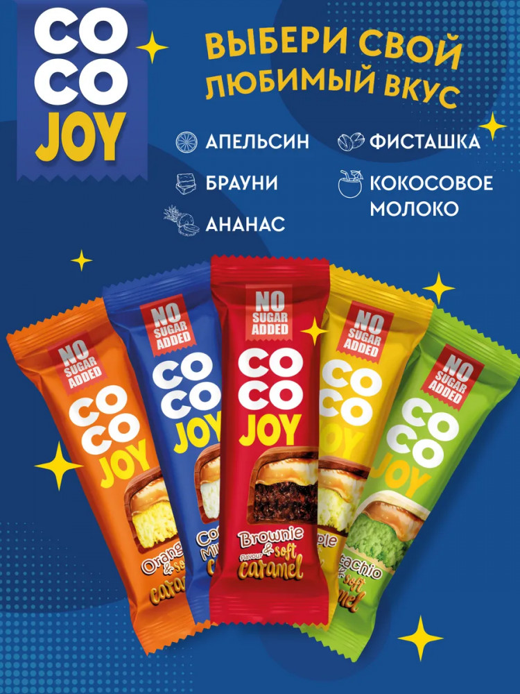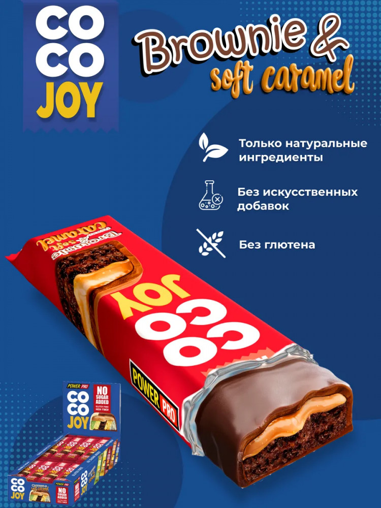 Power Pro Набор батончиков в шоколаде с кокосом и карамелью со вкусом брауни без сахара «Coco Joy»
