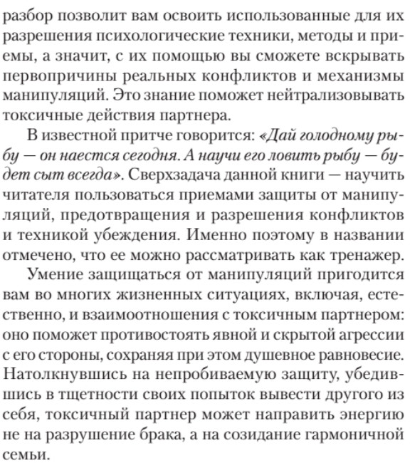 💳 Оплатить за товар можно при получении 🇰🇿 Есть бесплатная доставка по Казахстану от 1 дня 🎁 Копите бонусы с каждой покупки Серия: #экопокет Эта книга написана в помощь тем, кто страдает от токсичного партнера. Здесь вы найдете полезные советы и стратегии для распознавания и управления отношениями с партнерами, демонстрирующими токсичное поведение. Автор анализирует характерные черты таких людей и предлагает методы защиты своей эмоциональной устойчивости. В книге описываются приемы защиты от манипуляций токсичного партнера, техники управления конфликтами, приемы убеждения, установление границ и способы улучшения коммуникации. |