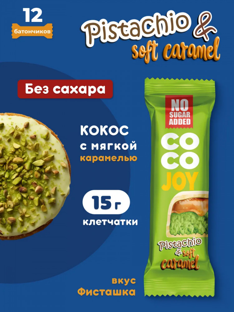 Power Pro Набор батончиков в шоколаде с кокосом и карамелью со вкусом фисташки без сахара «Coco Joy»