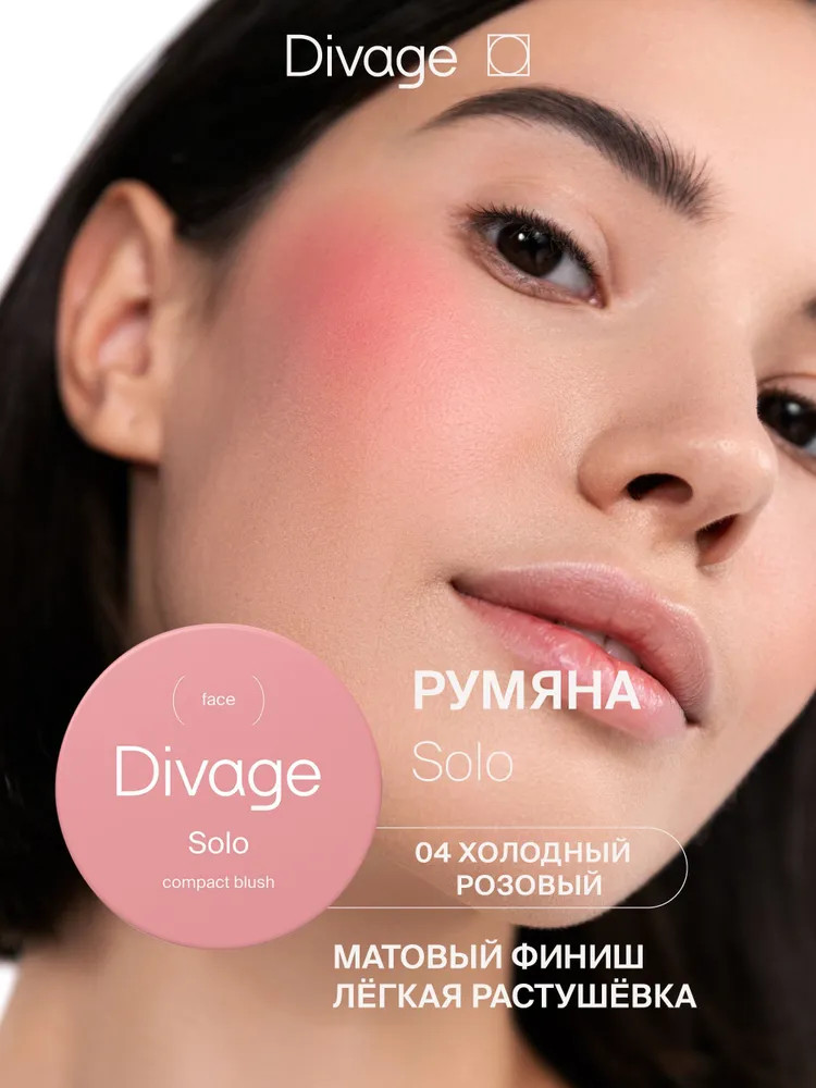 Divage Румяна для лица «Solo Compact Blush», оттенок 04 Холодный розовый