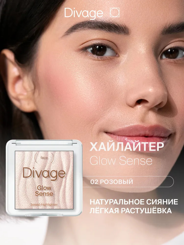 Divage Хайлайтер для лица запеченный «Glow Sense Baked Highlighter», оттенок 02 Розовое сияние
