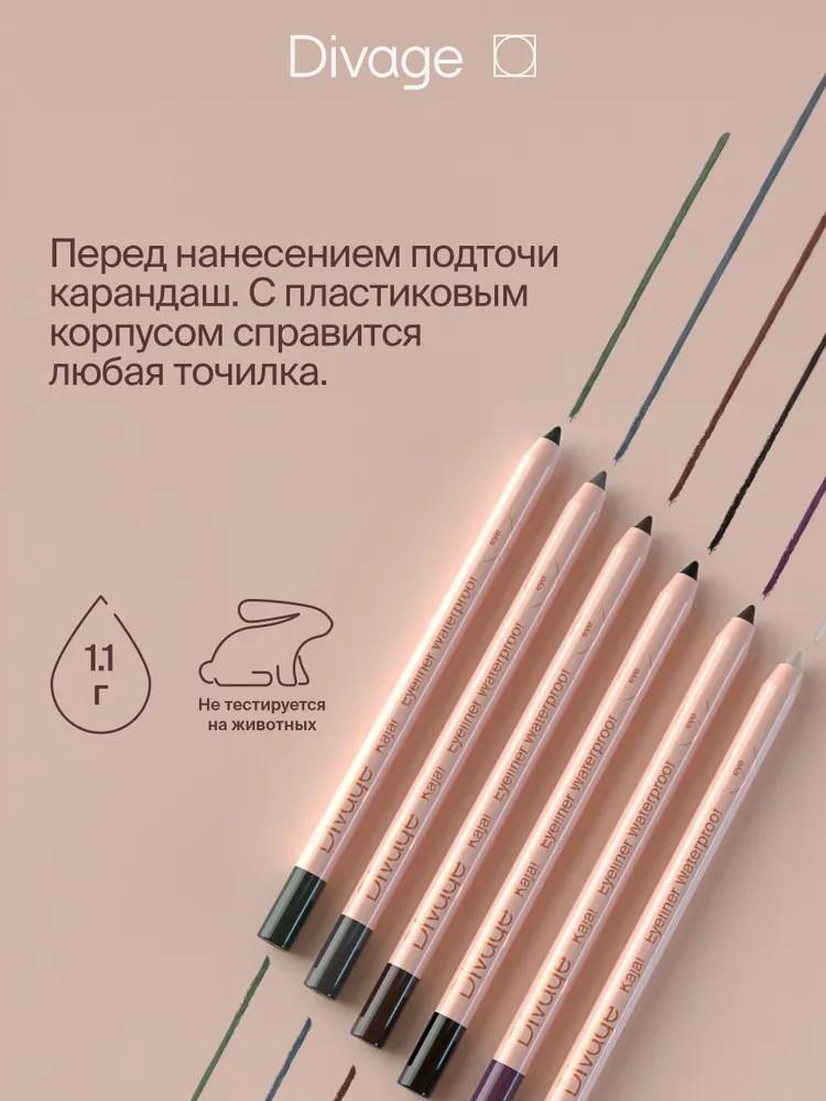 Divage Карандаш для глаз водостойкий «Kajal Eyeliner Waterproof», оттенок 01 Чёрный