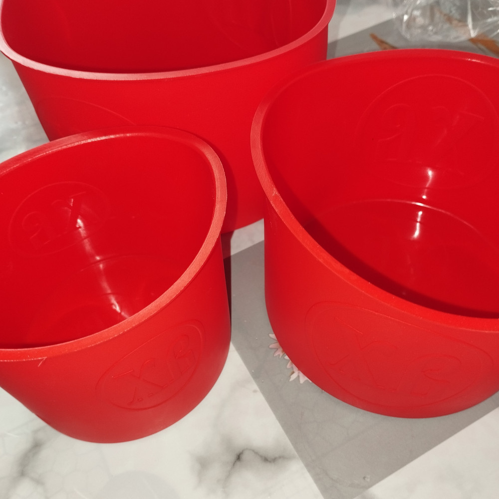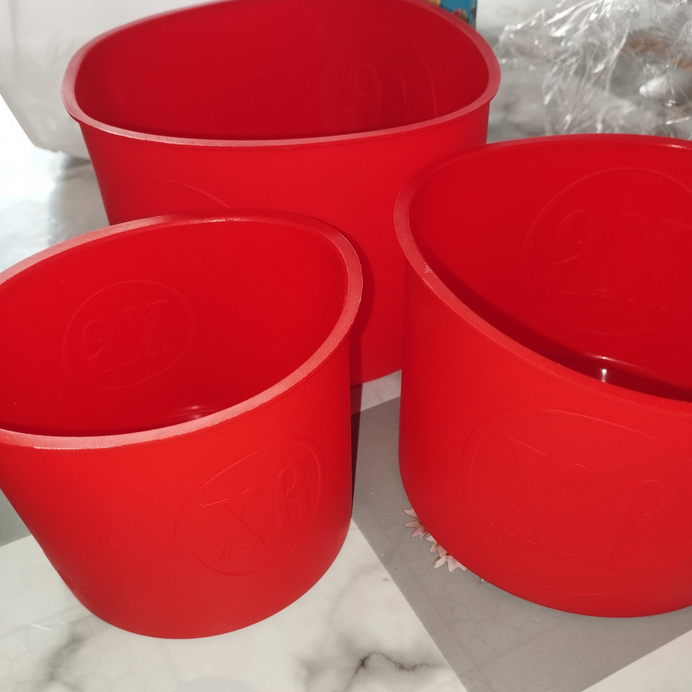 Очень удобные формы трех видов: большая ,средняя и маленькая.Использовала для выпечки куличей,планирую их же использовать для выпечки кексов.Красивый яркий цвет.Очень понравились.