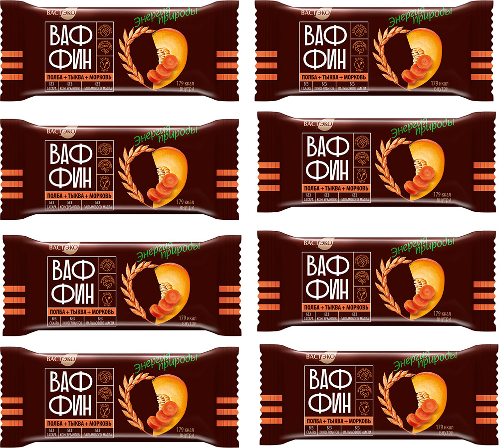 Вастэко Набор вафель глазированных без сахара «Ваффин из полбы с морковью и тыквой в горьком шоколаде»