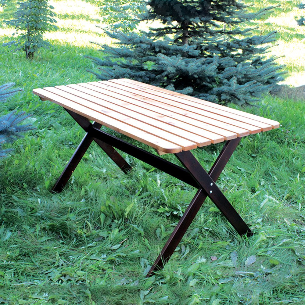 Деревянная конструкция придает столу естественный и стильный вид, который отлично впишется в любой ландшафт — будь то ухоженный сад или дачный участок. Он подходит как для семейных ужинов, так и для уютных посиделок с друзьями. Большая поверхность стола дает достаточно места для сервировки блюд и напитков, а его высота способствует удобству использования.