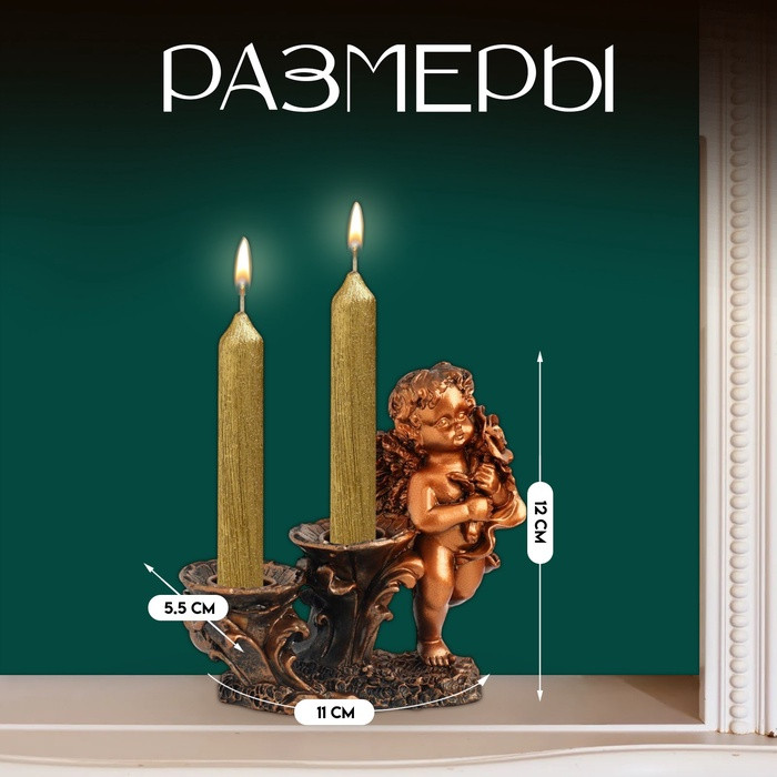 Take it easy Подсвечник на две свечи «Ангелочек»В данный момент этот товар отсутствует в продаже. Возможно, у нас найдется аналогичный или похожий товар здесь. Огонь всегда являлся символом тепла и спокойствия, поэтому подсвечник «Ангелочек» станет прекрасным подарком и украшением любого интерьера. Изделие отлично смотрится на журнальном столике или на полочке с книгами. Диаметр под свечу 2 см. Данный подсвечник предназначен для двух свечей (свечи в комплект не входят). |