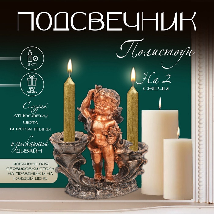 Take it easy Подсвечник на две свечи «Ангелочек»В данный момент этот товар отсутствует в продаже. Возможно, у нас найдется аналогичный или похожий товар здесь. Огонь всегда являлся символом тепла и спокойствия, поэтому подсвечник «Ангелочек» станет прекрасным подарком и украшением любого интерьера. Изделие отлично смотрится на журнальном столике или на полочке с книгами. Диаметр под свечу: 2 см. Данный подсвечник предназначен для двух свечей (свечи в комплект не входят). |