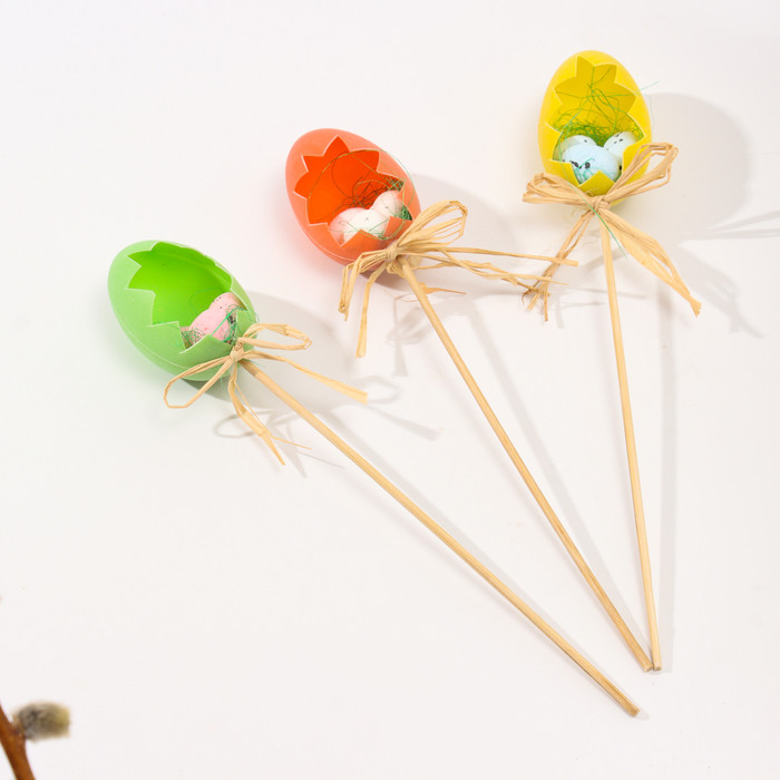 Набор декора на палочке «Яйца»В данный момент этот товар отсутствует в продаже. Возможно, у нас найдется аналогичный или похожий товар здесь. Добавьте волшебства в пасхальное оформление с декоративными элементами на палочке! Эти изящные украшения идеально подойдут для оформления праздничного стола, букетов, корзинок с куличами и подарков. |