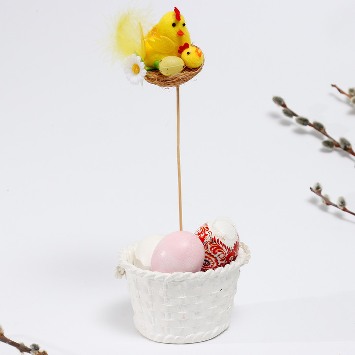 Декор на палочке «Курочка в гнезде»В данный момент этот товар отсутствует в продаже. Возможно, у нас найдется аналогичный или похожий товар здесь. Добавьте волшебства в пасхальное оформление с декоративными элементами на палочке! Эти изящные украшения идеально подойдут для оформления праздничного стола, букетов, корзинок с куличами и подарков. |