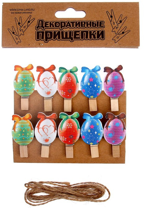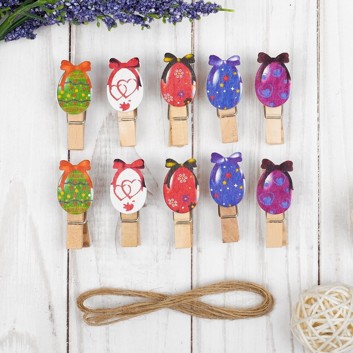 Набор прищепок декоративных с верёвкой для подвеса «Пасхальные яйца»-25% +17