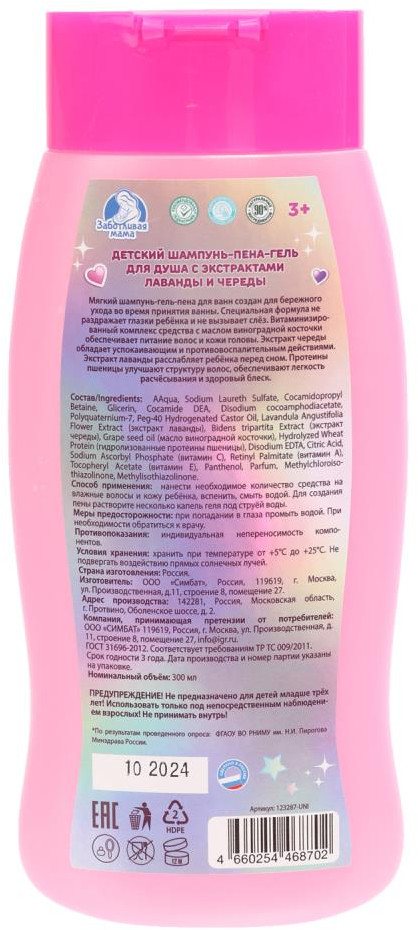 Заботливая мама Шампунь-пена-гель для душа детский «Единорог»