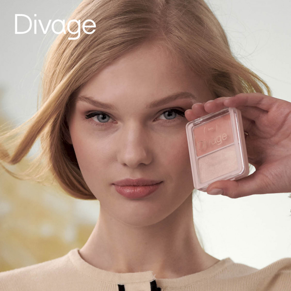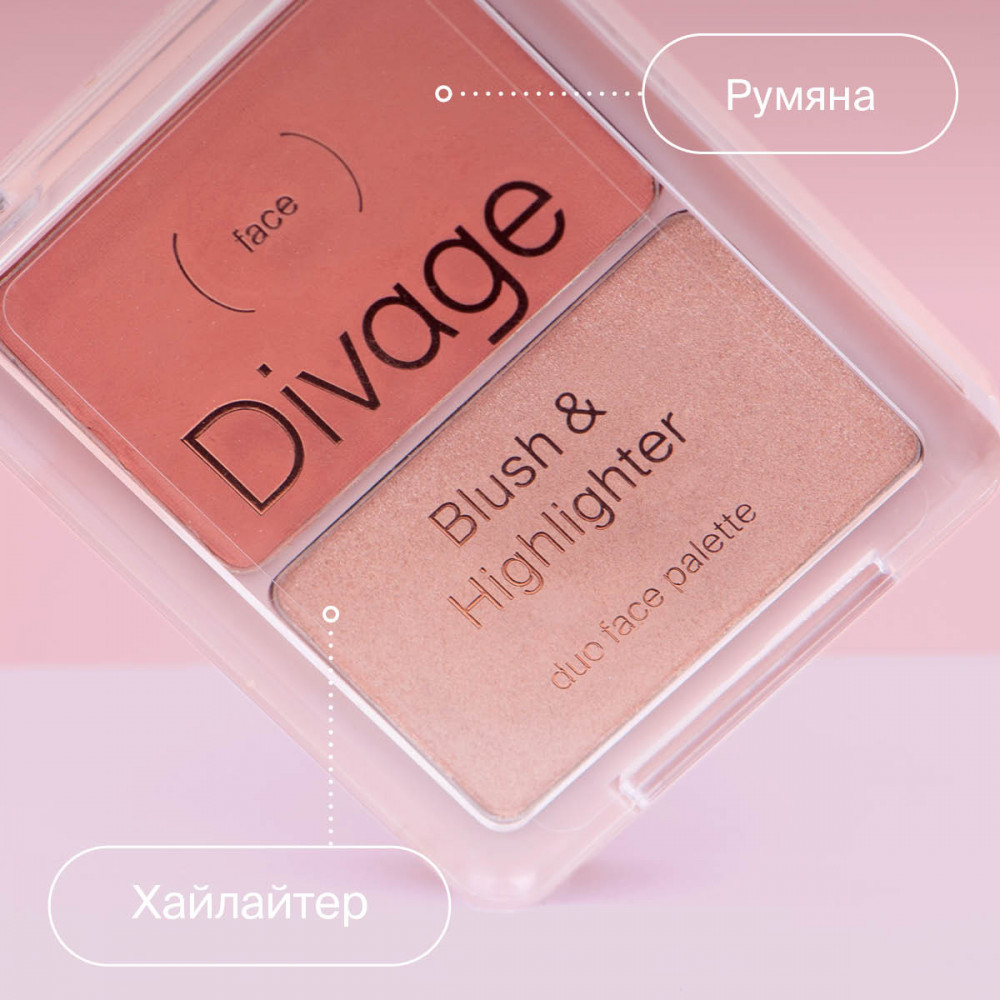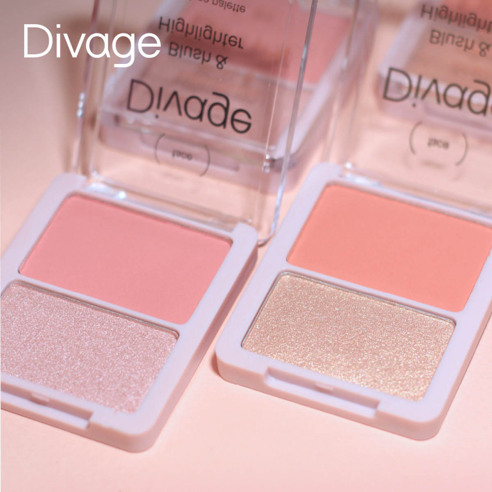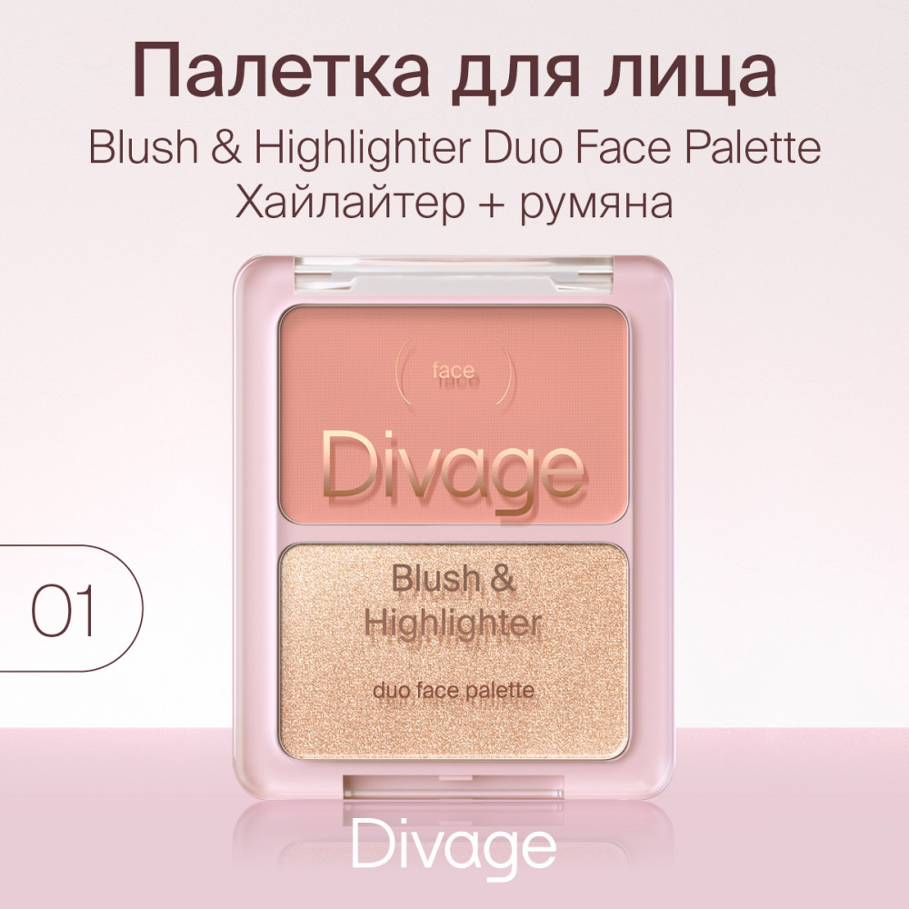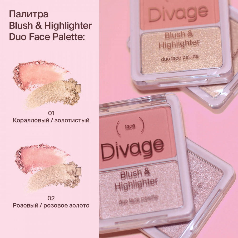 Divage Палетка для макияжа лица «Blush & Highlighter Duo Face», оттенок 01 Коралловый, золотистый