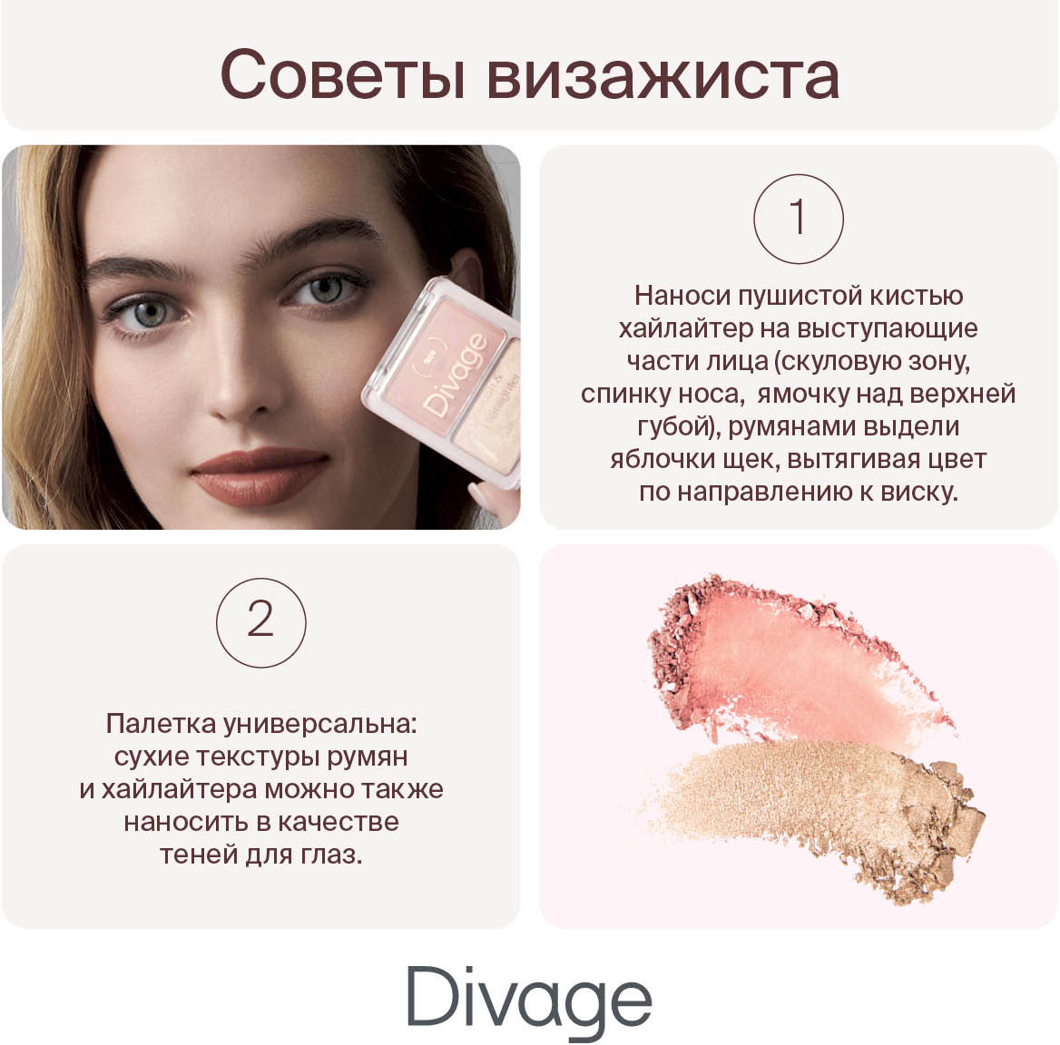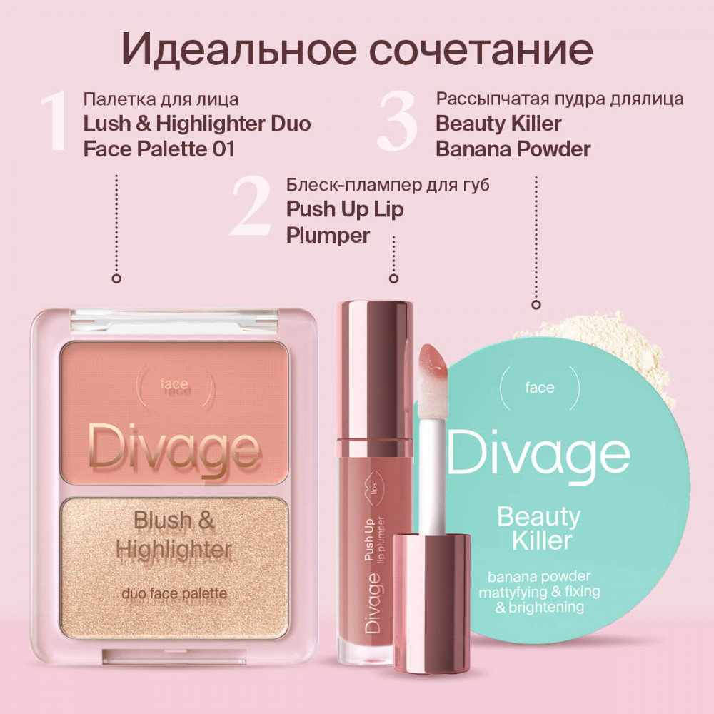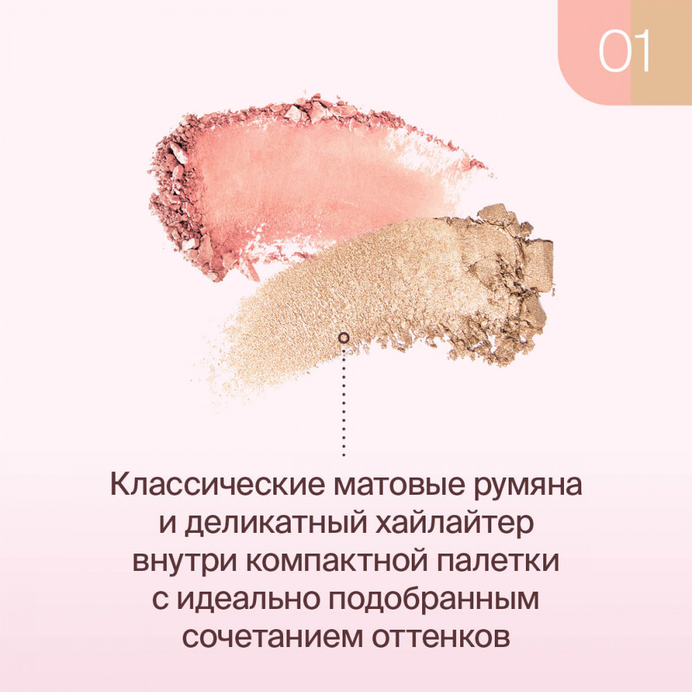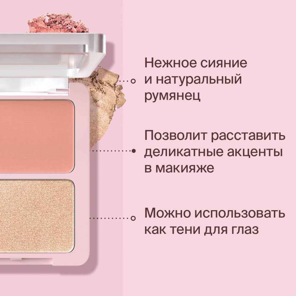 Divage Палетка для макияжа лица «Blush & Highlighter Duo Face», оттенок 01 Коралловый, золотистый