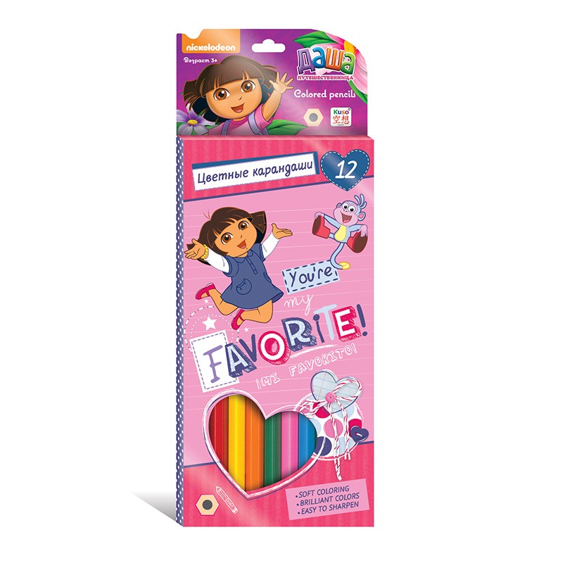 KUSO Карандаши цветные шестигранные, 12 цветовВ данный момент этот товар отсутствует в продаже. Возможно, у нас найдется аналогичный или похожий товар здесь. Серия: Даша - путешественница Даша-путешественница - набор из 12 шестигранных карандашей, который отлично подойдет для рисования и раскрашивания. Улучшенная формула грифеля и диаметр стержня обеспечивает мягкое письмо. Форма карандаша способствует развитию мелкой моторики рук. |