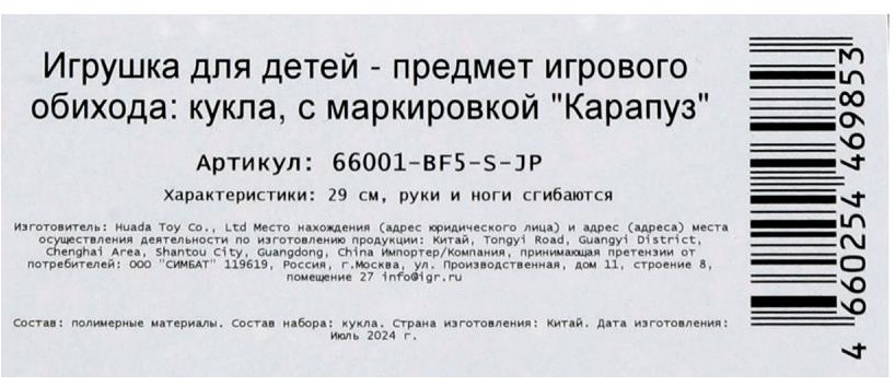 💳 Оплатить за товар можно при получении 🇰🇿 Есть бесплатная доставка по Казахстану 🎁 Копите бонусы с каждой покупки Кукла «София» ТМ «Карапуз» станет прекрасным подарком для вашей принцессы: |