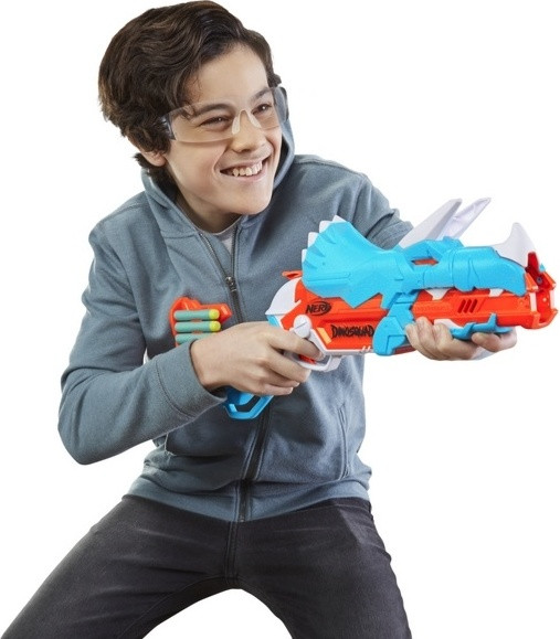 Nerf Бластер «Дино Трицерабласт»В данный момент этот товар отсутствует в продаже. Возможно, у нас найдется аналогичный или похожий товар здесь. Приготовьтесь к бою с оригинальным нерфом Дино Трицерабласт! Зарядите тремя стрелами бластер Nerf DinoSquad Tricera, который отличается потрясающим дизайном, и передает внешний вид Трицератопса. Откройте бластер, надавив на рог, расположенный на голове динозавра, чтобы опустить ствол, и открыть камеру для стрел. Загрузите 3 стрелы и закройте ствол. Спустите курок, чтобы зарядить бластер, затем нажмите на спусковой крючок, чтобы выстрелить 1 стрелу в цель. У этого бластера предусмотрено встроенное хранилище для 12 стрел, чтобы резервные стрелы всегда были под рукой, и вы могли быстро перезагрузить бластер, и продолжить игру. Рекомендуется надевать очки (не входят в комплект). Батарейки не требуются. |