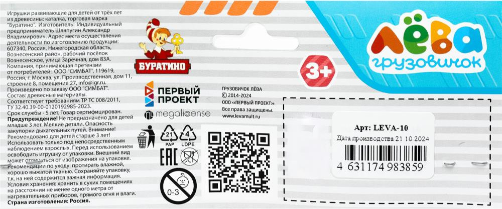 Буратино Каталка «Грузовичок Лева»-30% +38