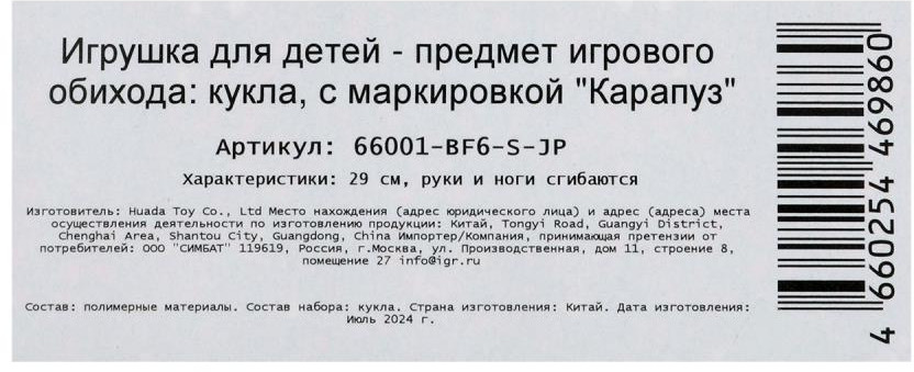 💳 Оплатить за товар можно при получении 🇰🇿 Есть бесплатная доставка по Казахстану 🎁 Копите бонусы с каждой покупки Кукла «София» ТМ «Карапуз» станет прекрасным подарком для вашей принцессы: |
