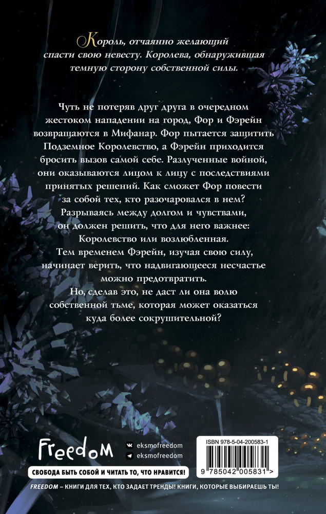 💳 Оплатить за товар можно при получении 🇰🇿 Есть бесплатная доставка по Казахстану от 1 дня 🎁 Копите бонусы с каждой покупки Серия: Young Adult. Король Теней Эпичный финал романтической young adult трилогии «Король теней». Захватывающая дух фэнтези-история о любви, способной преодолеть любые преграды. Роман придется по душе фанатам Даниэль Л. Дженсен и Элис Ковы, а также поклонникам слоуберна и проработанных фэнтези-миров, напоминающих сказку. Чуть не потеряв друг друга в очередном жестоком нападении на город, Фор и Фэрейн возвращаются в Мифанар. Фор пытается защитить Подземное Королевство, а Фэрейн приходится бросить вызов самой себе. |