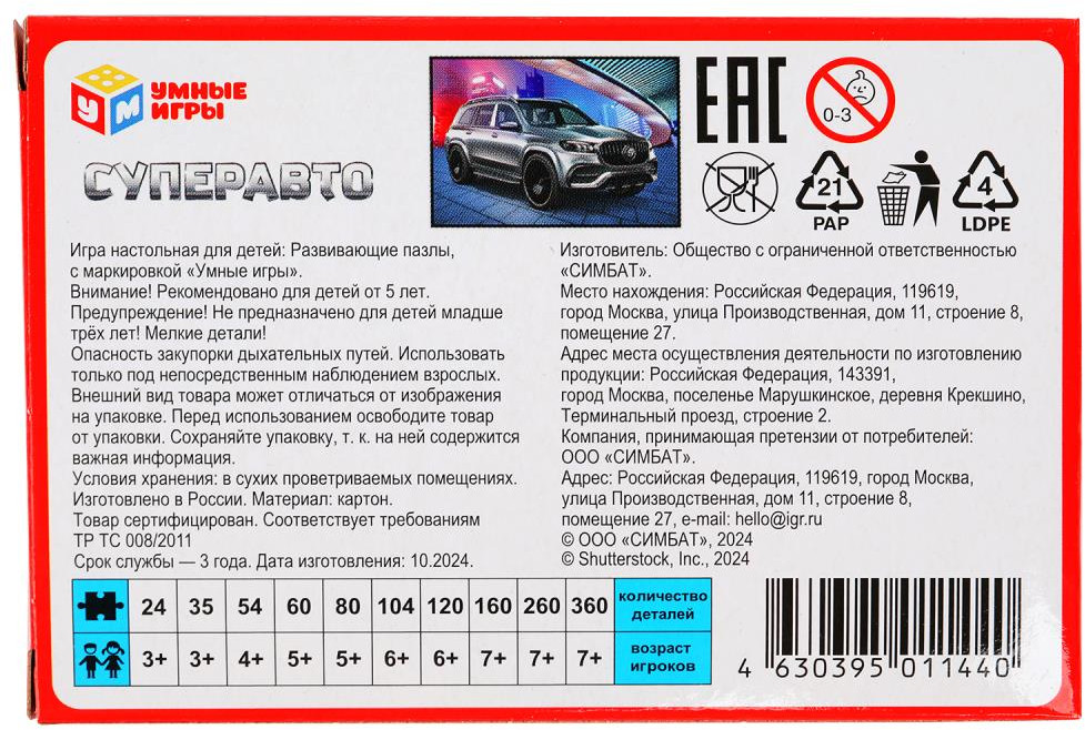 💳 Оплатить за товар можно при получении 🇰🇿 Есть бесплатная доставка по Казахстану от 1 дня 🎁 Копите бонусы с каждой покупки Классические пазлы в коробке «Суперавто» ТМ «Умные игры» непременно понравятся маленьким любознайкам: |