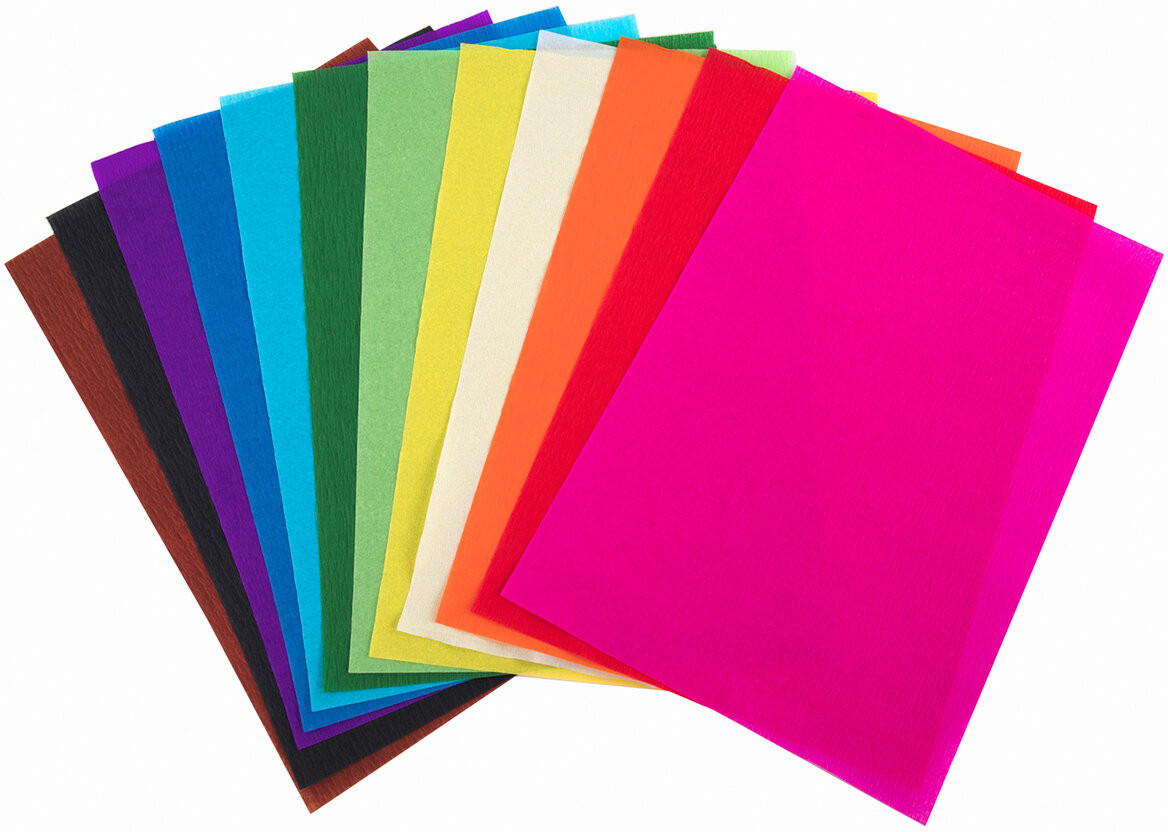 Набор бумаги с мелкоскладчатой (крепированной) поверхностью Юнландия используется для создания поделок и аппликаций, украшения открыток и других изделий, оформления подарочной упаковки. В наборе 12 листов формата А4 и 12 различных цветов.