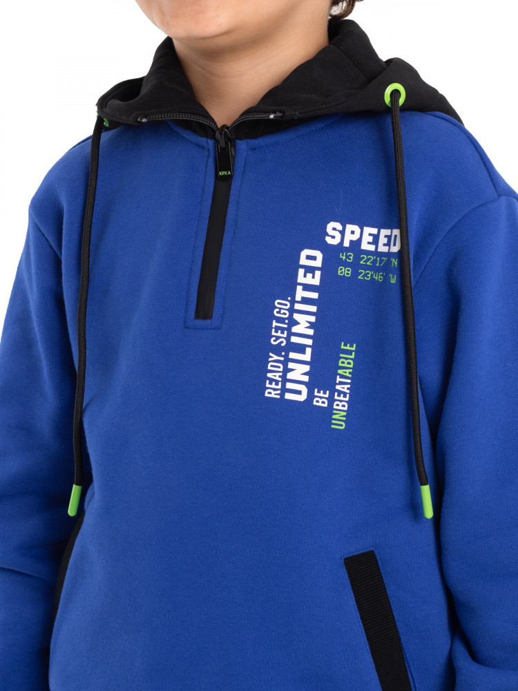 Эта мягкая и теплая толстовка идеально подойдет для активных мальчишек, которые любят удобную одежду. Дышащий и приятный к телу материал обеспечивает комфорт на весь день, а свободный крой не сковывает движений. Толстовка отлично подходит прогулок и спорта, легко сочетается с джинсами, спортивными брюками и шортами.