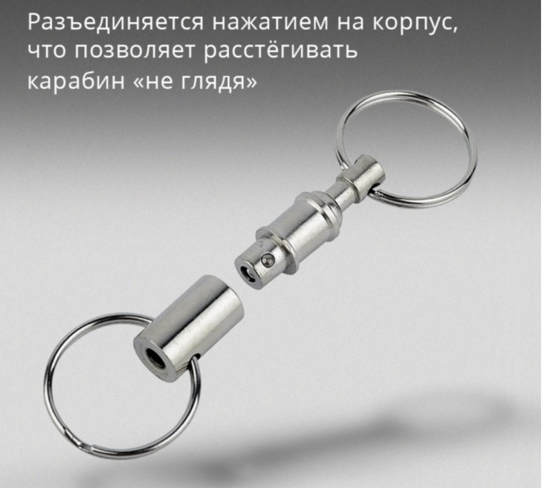 Брелок карабин съемныйВ данный момент этот товар отсутствует в продаже. Возможно, у нас найдется аналогичный или похожий товар здесь. Быстросъемный карабин — удобный аксессуар для быстрого и надежного соединения ключей, брелоков и других мелочей. Практичный и стильный аксессуар для повседневного использования! |