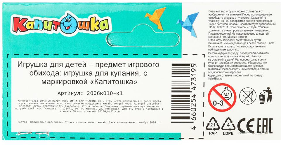 | Под маркой «Капитошка» выпускается большой ассортимент игрушек. Вся продукция выполняется из высококачественных материалов и гарантирует безопасность Вашего ребенка в процессе эксплуатации и долговечность самой игрушки. |