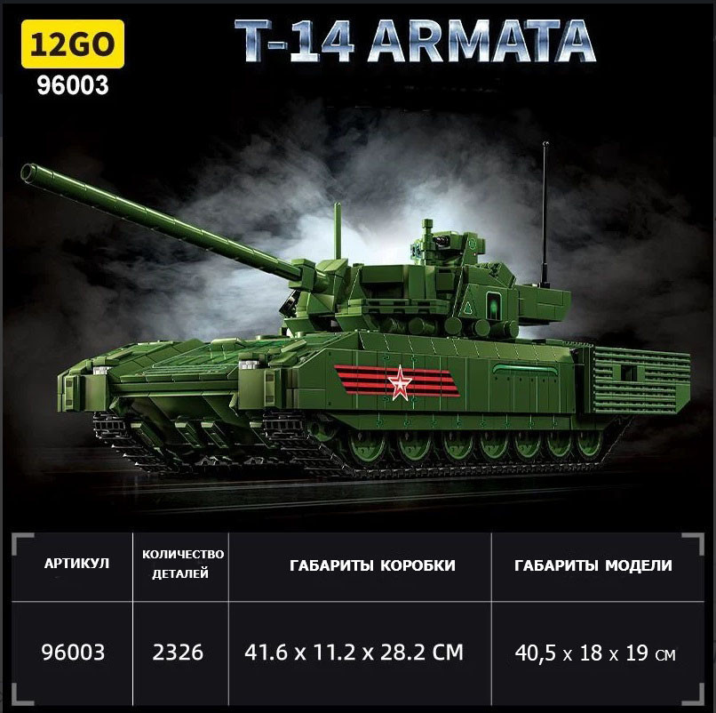 Конструктор 12GO Основной Боевой Танк T-14 Армата это уникальная возможность собрать реалистичную модель современной российской боевой машины. Вы получите увлекательный и захватывающий опыт сборки. Конструктор подойдет для детей от 6 лет и взрослых любителей сборки моделей из кубиков. Этот конструктор является точным воспроизведением современной боевой машины Т-14 Армата, отличающейся применением в конструкции наиболее продвинутых и современных технологий.