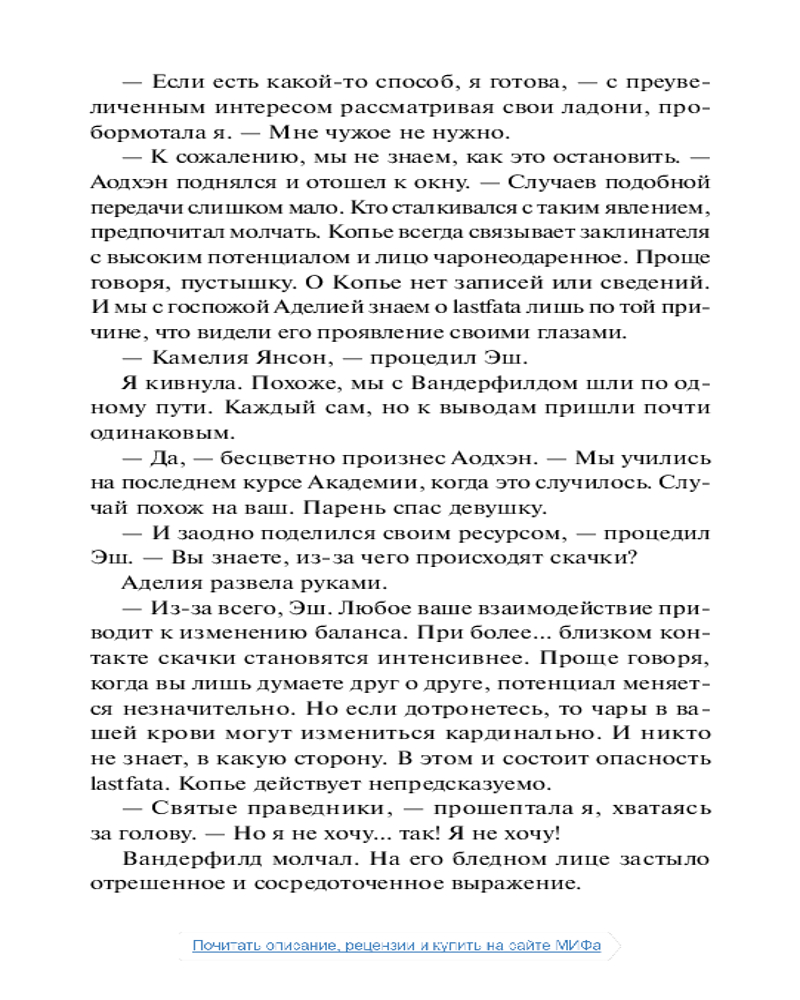 💳 Оплатить за товар можно при получении 🇰🇿 Есть бесплатная доставка по Казахстану от 1 дня 🎁 Копите бонусы с каждой покупки Серия: Миры Марины Суржевской Lastfata, Копье Судьбы... Страшная тайна, связавшая Тину Аддерли из Котловины и великолепного Эша Вандерфилда. О ней не написано в книгах, из архивов удалены почти все упоминания, а тех, кого она коснулась, уже нет в живых. Как обычным ученикам магической академии справиться со страшным проклятием, которое грозит не только им двоим, но и всей Тритории? |
