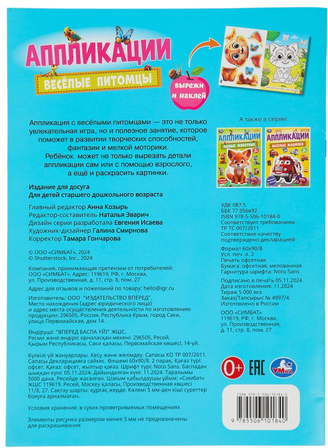 💳 Оплатить за товар можно при получении 🇰🇿 Есть бесплатная доставка по Казахстану от 1 дня 🎁 Копите бонусы с каждой покупки Активити с аппликациями «Весёлые питомцы» из серии «Вырежи и наклей» ТМ «УМка» непременно понравится маленьким фантазёрам: |