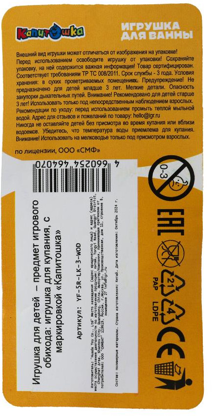 | Под маркой «Капитошка» выпускается большой ассортимент игрушек. Вся продукция выполняется из высококачественных материалов и гарантирует безопасность Вашего ребенка в процессе эксплуатации и долговечность самой игрушки. |
