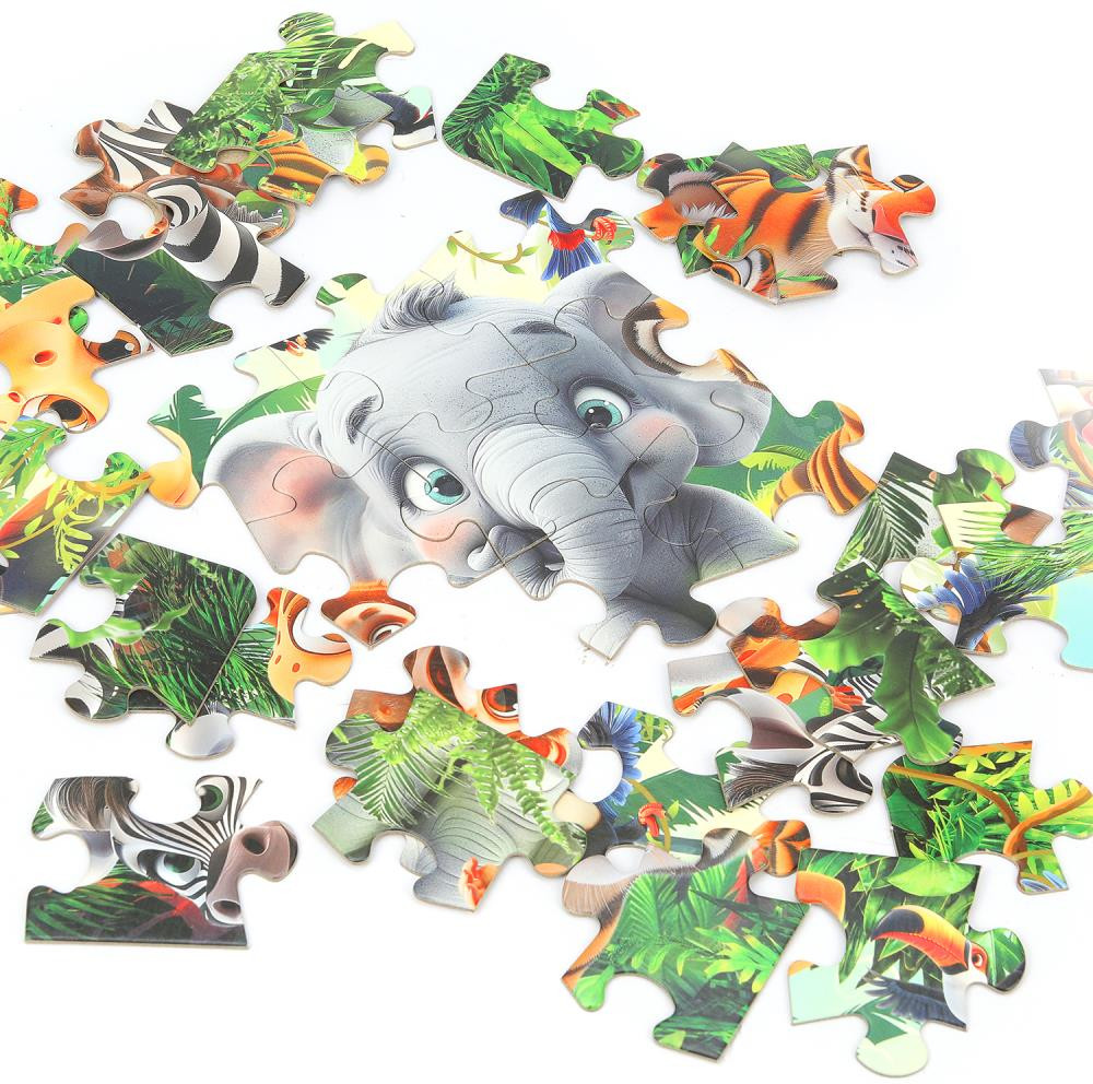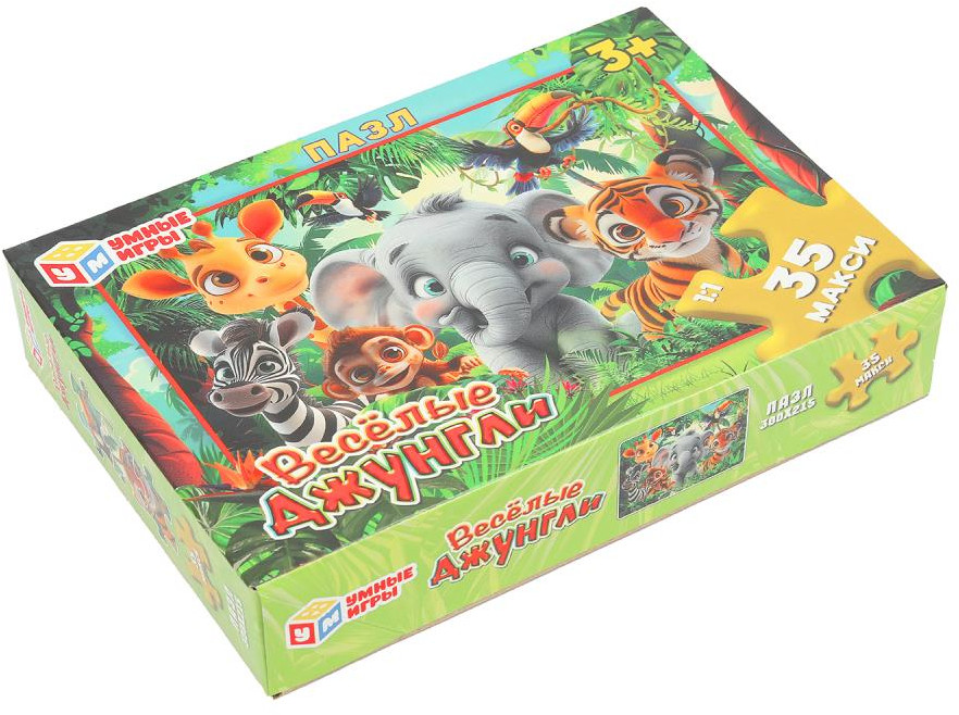 Макси-пазл «Весёлые джунгли» ТМ «Умные игры» непременно понравятся детям. Данный пазл представляет собой игру-головоломку, в которой необходимо в правильной последовательности соединить элементы друг с другом и получить в результате красочную картинку с изображением милых зверят и птиц, обитающих в джунглях. Сборка пазлов — это очень увлекательное занятие, в процессе которого дети учатся искать и совмещать детали разной формы, с каждым разом делая это всё лучше и быстрее. Собирая макси-пазлы ТМ «Умные игры», ребёнок будет развивать: внимание, память, мышление, моторику, усидчивость и логику. |