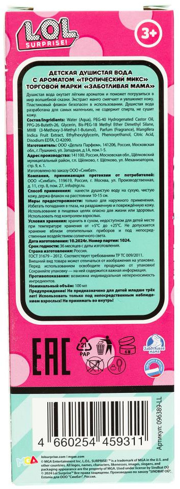 Заботливая мама Детская душистая вода «L.O.L. Тропический микс»В данный момент этот товар отсутствует в продаже. Возможно, у нас найдется аналогичный или похожий товар здесь. Серия: LOL Душистая вода окутает лёгким ароматом и поможет погрузиться в мир волшебной сказки. Натуральный экстракт манго оказывает заживляющее, укрепляющее и увлажняющее действие. Пластиковый флакон безопасен в использовании. Душистая вода разработана для самых маленьких, не содержит спирта, не сушит кожу. |