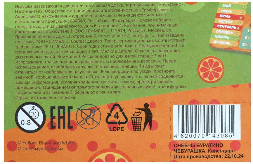 💳 Оплатить за товар можно при получении 🇰🇿 Есть бесплатная доставка по Казахстану от 1 дня 🎁 Копите бонусы с каждой покупки Серия: Союзмультфильм Деревянный вкладыш- календарь «Чебурашка» ТМ «Буратино» — отличная развивающая игра для маленьких поклонников фильма про милого ушастика: |