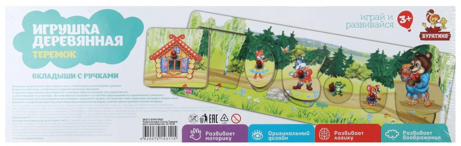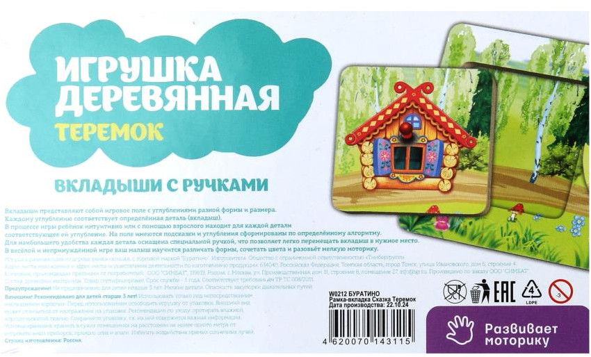 💳 Оплатить за товар можно при получении 🇰🇿 Есть бесплатная доставка по Казахстану от 1 дня 🎁 Копите бонусы с каждой покупки Деревянная рамка-вкладыш «Теремок» ТМ «Буратино» — отличная развивающая игра для маленьких любознаек: |