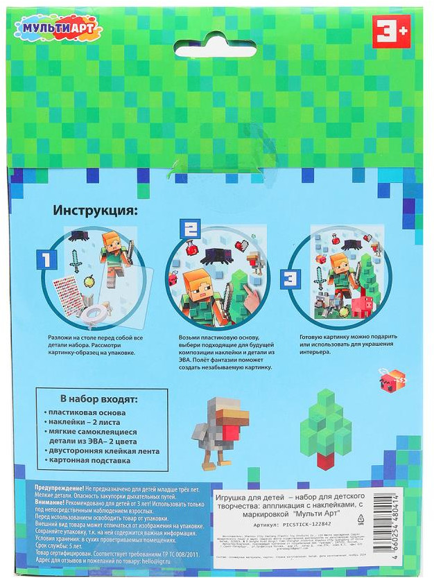 💳 Оплатить за товар можно при получении 🇰🇿 Есть бесплатная доставка по Казахстану от 1 дня 🎁 Копите бонусы с каждой покупки Набор для творчества — картина наклейками «Мир пикселей» ТМ «Мульти Арт» — отличный подарок для ребёнка, который будет способствовать развитию его творческих способностей. С помощью красочной основы и разноцветных наклеек маленький художник сможет самостоятельно создать яркую картинку в стиле популярной компьютерной игры. Готовую поделку можно подарить близким или использовать для украшения интерьера. Занятия с наборами для творчества ТМ «Мульти Арт» развивают: внимание, усидчивость, творческое мышление, сенсорное и цветовое восприятие, моторику рук и воображение. |