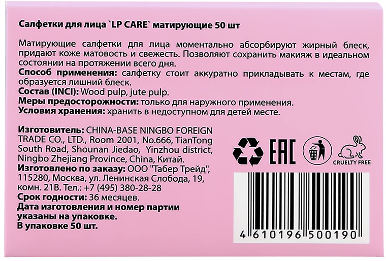 Матирующие салфетки для лица LP Care моментально абсорбируют жирный блеск, придают коже матовость и свежесть. Позволяют сохранить макияж в идеальном состоянии на протяжении всего дня.