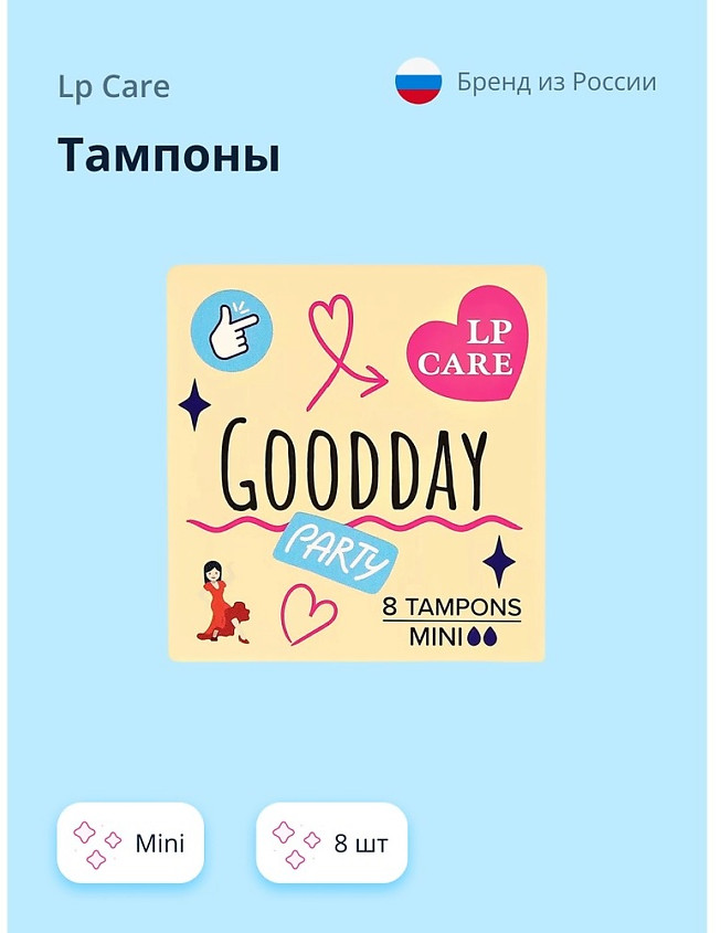 Тампоны LP Care придают комфорт и уверенность, обеспечивая надежную защиту от протеканий. Подходят для женщин с чувствительной кожей и не вызывают раздражение. Каждый тампон в индивидуальной упаковке — удобно брать с собой.