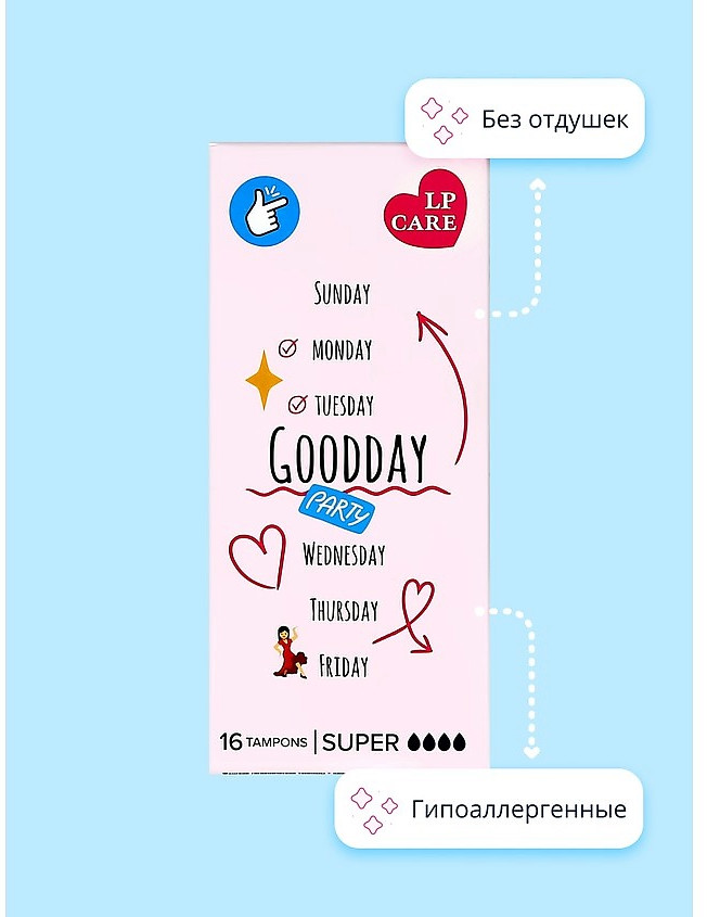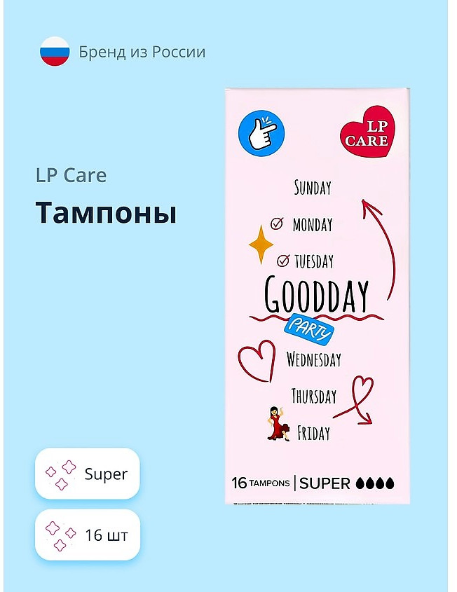 Тампоны LP Care придают комфорт и уверенность, обеспечивая надежную защиту от протеканий. Подходят для женщин с чувствительной кожей и не вызывают раздражение. Каждый тампон в индивидуальной упаковке — удобно брать с собой.