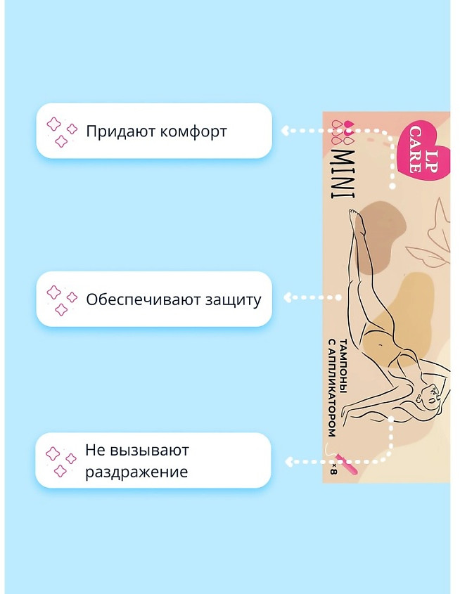 Тампоны LP Care придают комфорт и уверенность, обеспечивая надежную защиту от протеканий. Подходят для женщин с чувствительной кожей и не вызывают раздражение. Каждый тампон в индивидуальной упаковке — удобно брать с собой.