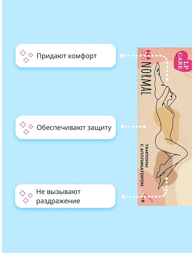 Тампоны LP Care придают комфорт и уверенность, обеспечивая надежную защиту от протеканий. Подходят для женщин с чувствительной кожей и не вызывают раздражение. Каждый тампон в индивидуальной упаковке — удобно брать с собой.
