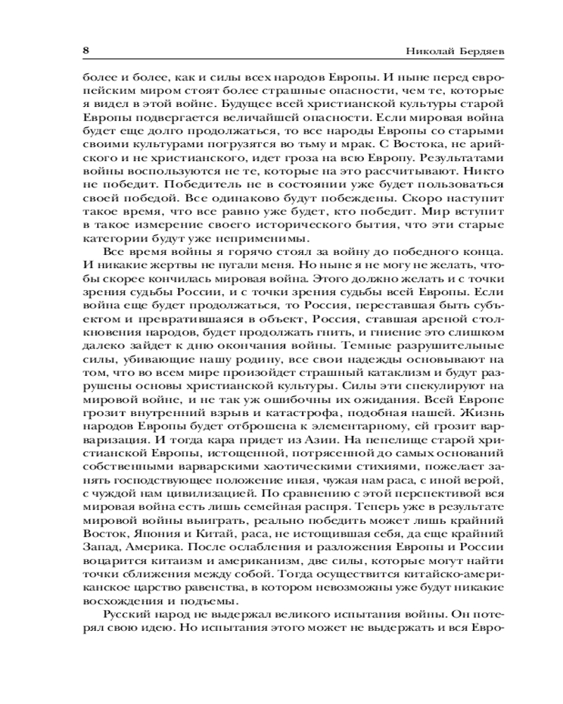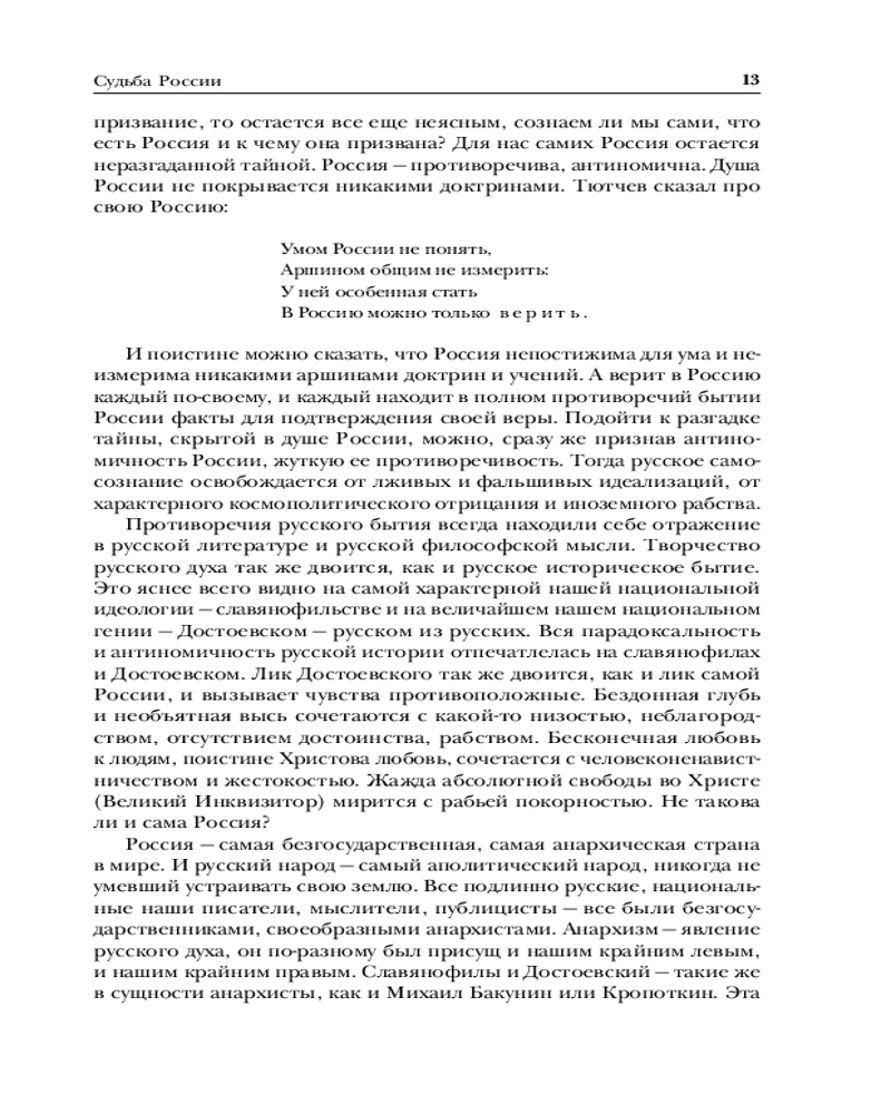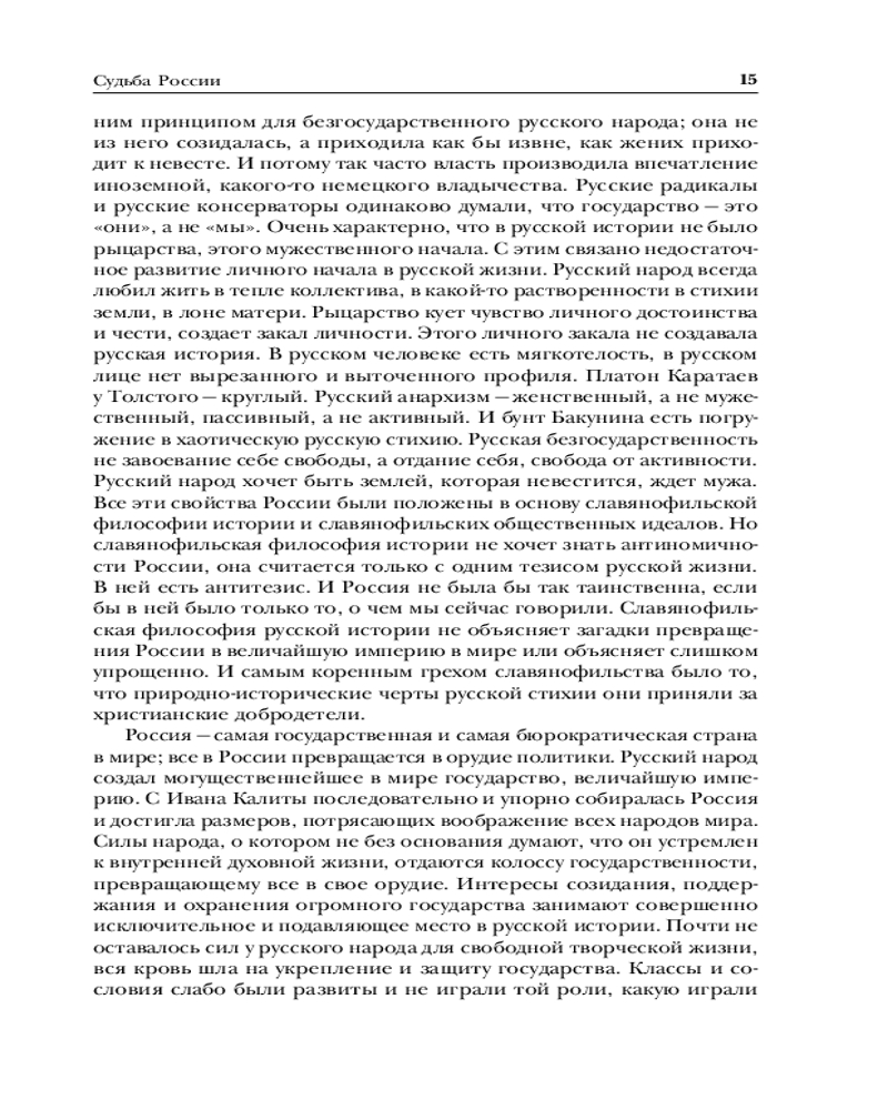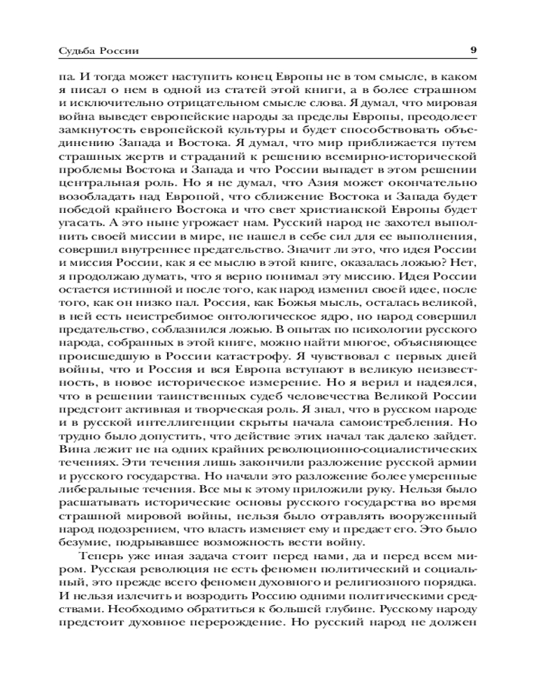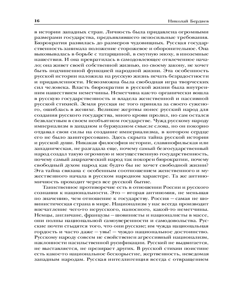 Николай Бердяев. Судьба России. Самопознание. Русская идеяВ данный момент этот товар отсутствует в продаже. Возможно, у нас найдется аналогичный или похожий товар здесь. Серия: Библиотека избранных сочинений Крупнейший русский философ первой половины XX века, автор оригинальной концепции философии личности и свободы — Николай Бердяев в своем творчестве сумел синтезировать и переосмыслить выводы целого ряда современных ему направлений отечественной и зарубежной философско-исторической мысли. Его «Русская идея» на долгие годы останется одним из замечательных произведений отечественного самосознания. В ней анализируется история России в контексте русской идеи, православной веры, духовности и свободы. «Судьба России» рассматривает особенности характера и душевного типа русского народа, его влияние на судьбу страны и духовное переосмысление истории государства для построения лучшего будущего. Книга «Самопознание», опубликованная посмертно, стала одним из последних произведений Бердяева, своеобразным итогом его размышлений. Материал этой книги настолько глубок и оригинален, что многие ее положения и выводы сохраняют актуальность и в наши дни. |